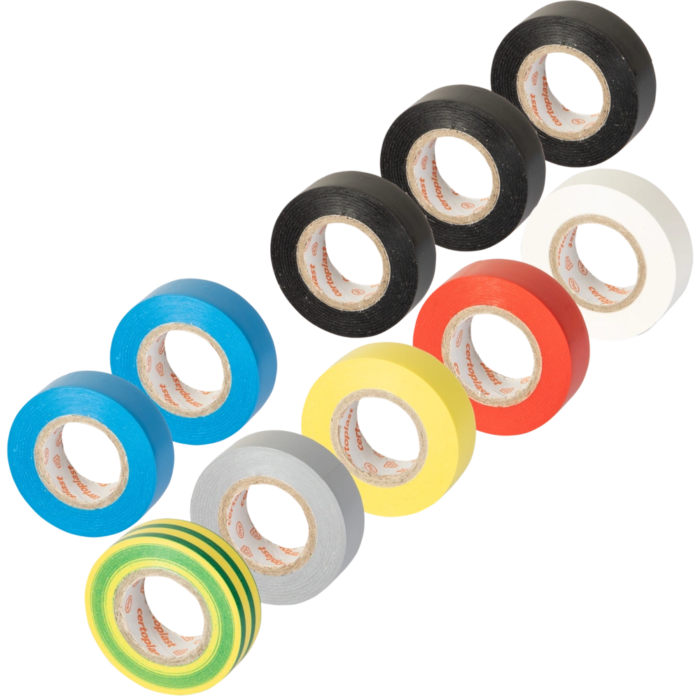 Il nastro isolante è adatto per tutti i lavori d'isolamento standard nel settore elettrico e per le riparazioni. Può anche essere usato universalmente per la marcatura colorata e l'impacchettamento.