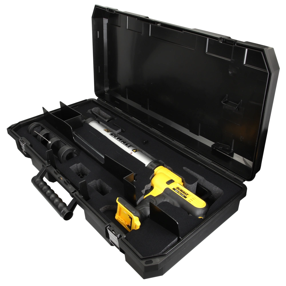 La pistola per cartucce portatile 18 V elabora cartucce da 310 ml, così come sacchetti di alluminio fino a 600 ml. La pistola contiene un controllo elettronico della velocità, un interruttore finemente regolabile per una quantità di spremitura molto precisa, un rilascio manuale del pistone a pressione, un ingranaggio completamente in metallo e una luce LED. Grazie alla pressione di spremitura molto alta, anche la lavorazione di adesivi e sigillanti particolarmente viscosi non è un problema. Il ritorno automatico dell'asta di alimentazione impedisce l'esaurimento dei sacchi di pellicola.