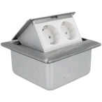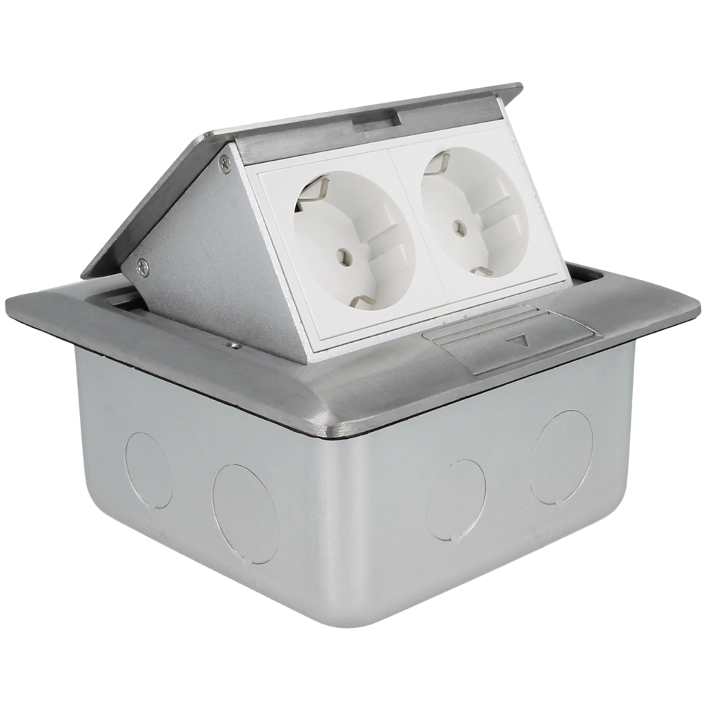 Tutte le informazioni sul prodotto FornituraQuesta presa da incasso di alta qualità per pavimento e parete con apertura ad ala retrattile assicura l'ordine in casa, in ufficio e in officina. Se necessario, le due prese di contatto di protezione con una maggiore protezione dei contatti possono essere ripiegate; quando non sono in uso, le prese sono incassate nel pavimento con il coperchio antipolvere a chiusura automatica e la presa zincata incorporata.