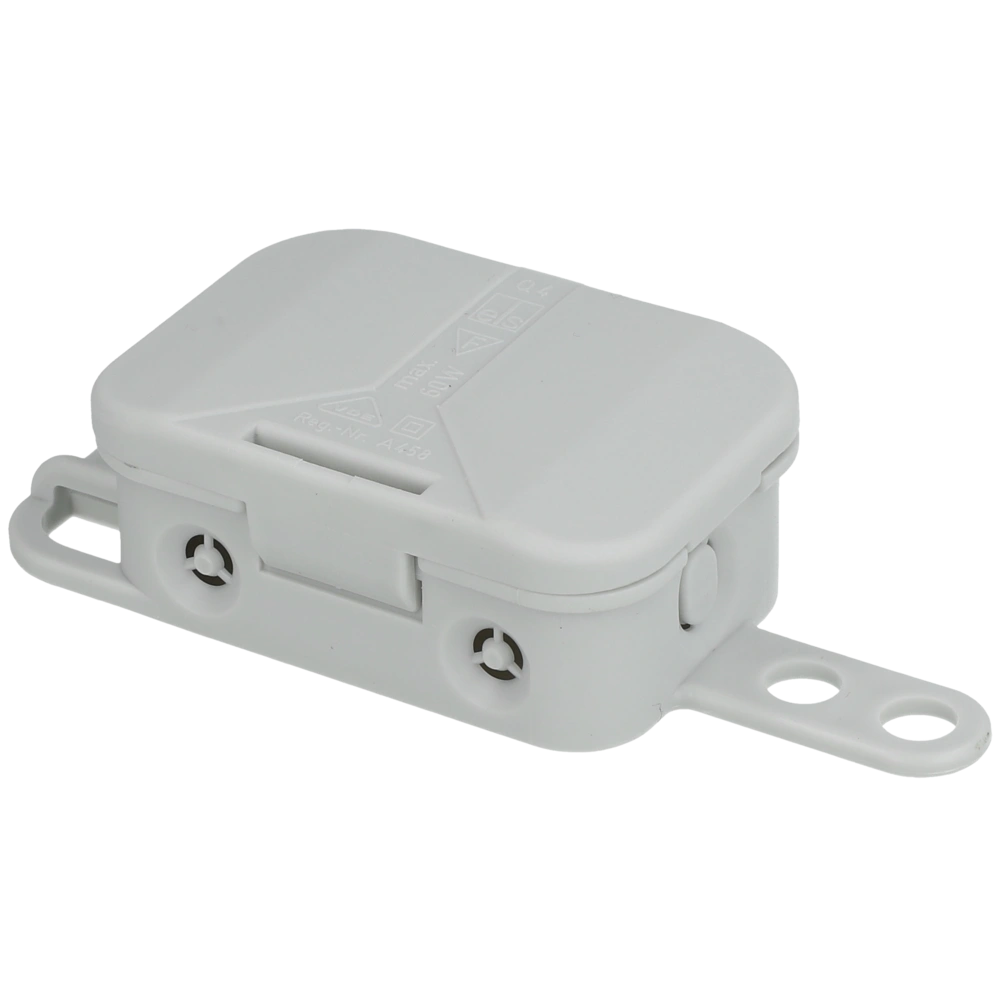 La presa a serrafilo controllata secondo la DIN EN 60598 (VDE 0711) con supporto condotto secondo la DIN 0606 per NYM 3 x 2,5 mm² contiene 4 entrate di cui 2 sono accessibili da sopra. Il tirante antistrappo è adatto per lampade a pendolo (max 60 W).
