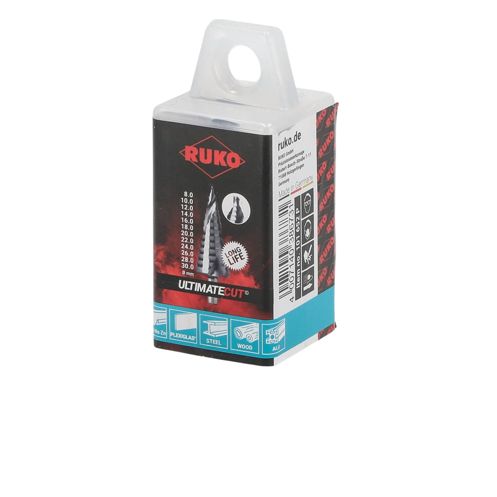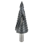 Punta a gradino in HSS ad alte prestazioni con punta FLOWSTEP. Ideale per acciaio inox, acciaio ad alta resistenza, ottone, alluminio e plastica. Non è necessaria la foratura centrale grazie alla punta da taglio...