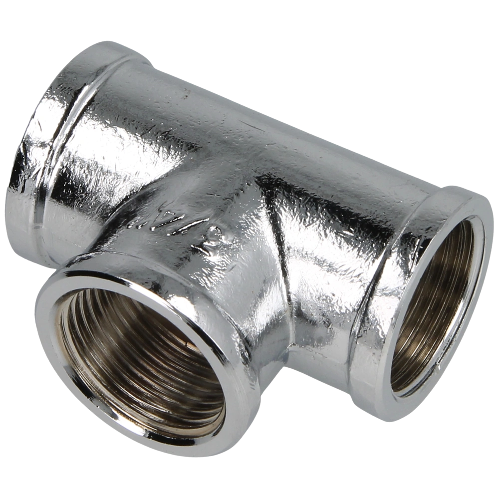 Il raccordo a T con tre filettature interne viene usato come raccordo a vite di tubature e elementi di montaggio. Il materiale usato è conforme alle attuali norme europee ed è adatto all'uso con acqua potabile secondo l'elenco positivo dell'Agenzia federale tedesca per l’ambiente.