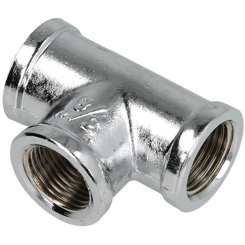Il raccordo a T con tre filettature interne viene usato come raccordo a vite di tubature e elementi di montaggio. Il materiale usato è conforme alle attuali norme europee ed è adatto all'uso con acqua potabile secondo l'elenco positivo dell'Agenzia federale tedesca per l’ambiente.