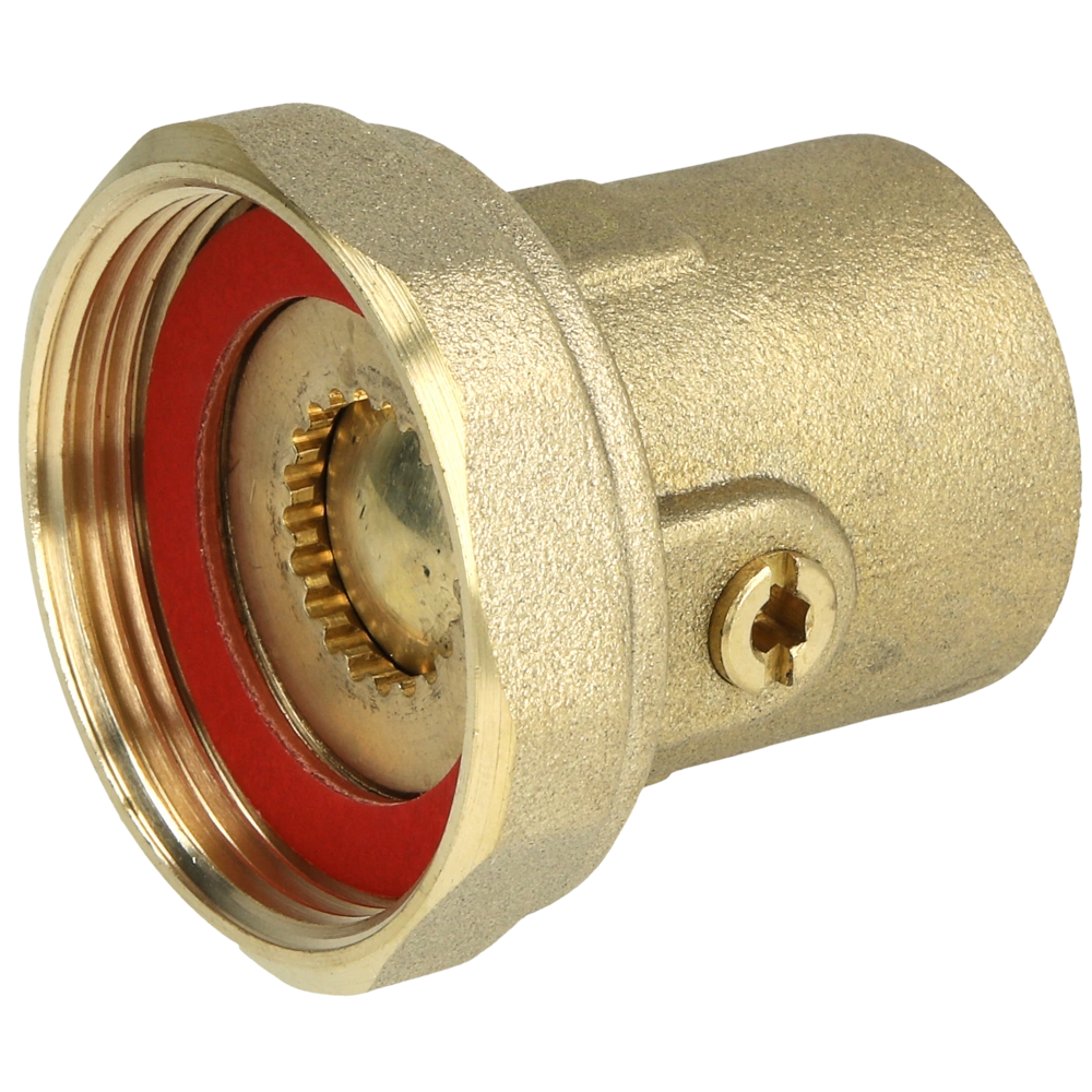 Il raccordo a vite per pompe è in ottone e adatto per l'uso d'acqua potabile, di riscaldamento e impianti solari. Il raccordo è chiudibile.