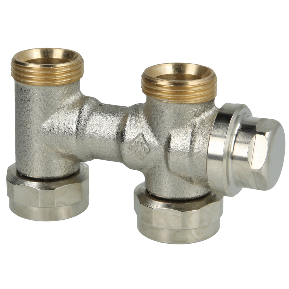 Tutte le informazioni sul prodottoIl raccordo di collegamento Vekolux 3/4, per impianti a due tubi garantisce lo svuotamento completo del radiatore, contemporaneamente tramite collegamento in avanti e indietro. Gli attacchi autosigillanti consentono una facile installazione sul radiatore. Il collegamento a vite può essere utilizzato sia per il collegamento a destra che a sinistra.