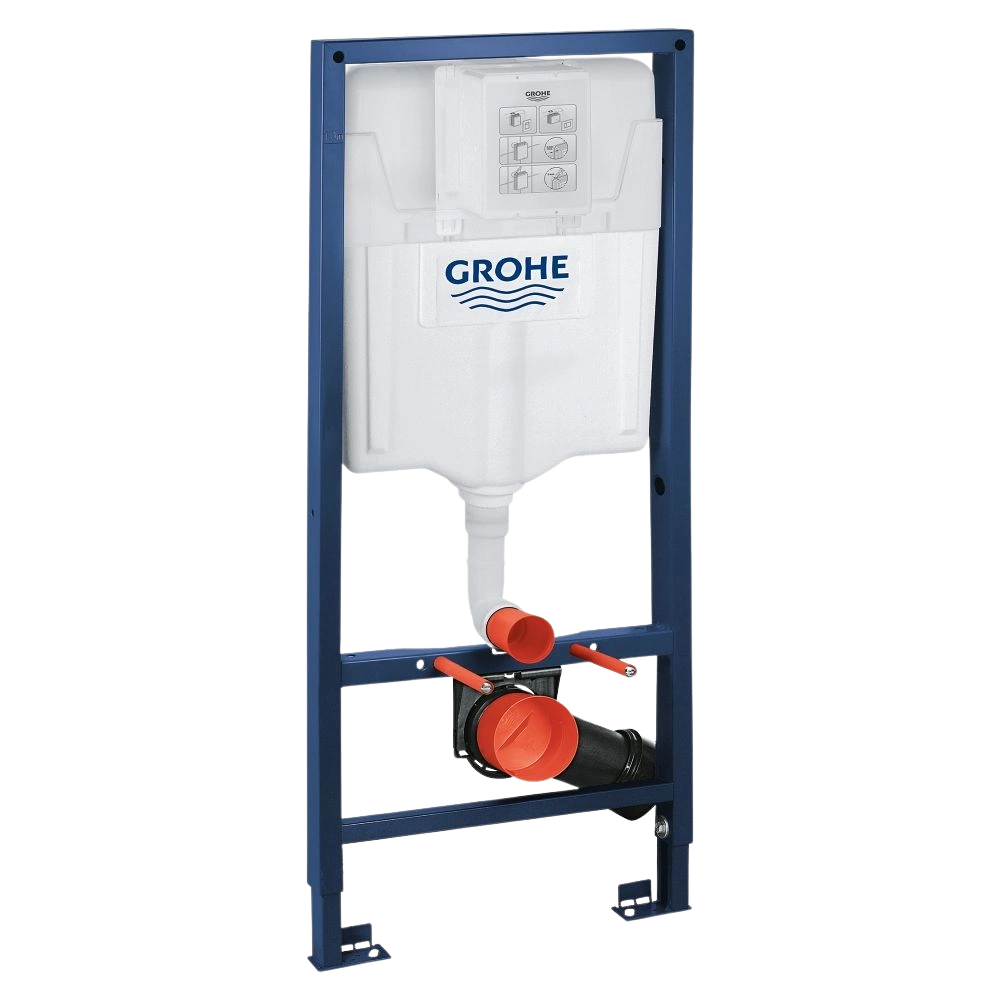 Il sistema di installazione Rapid SL completamente premontato per un WC sospeso in un telaio in acciaio è dotato della cassetta GD 2. È adatto per l'installazione a parete e a muro. Il sistema contiene una regolazione rapida e un blocco dell'altezza. Il materiale di fissaggio è testato dal TÜV. I due bulloni di fissaggio WC sono utilizzati per il fissaggio della ceramica e possono essere montati ad una distanza di 180 o 230 mm. Un set di supporto è necessario per le toilette con una superficie d'appoggio superiore a 205 mm. La curva di scarico regolabile in profondità ha un diametro di 90 mm. La cisterna offre un volume di 6 - 9 litri e ha un'impostazione di fabbrica di 6 e 3 litri. La valvola di scarico pneumatica è progettata per la funzione a 2 quantità e start & stop. L'acqua è collegata dalla parte posteriore, da sinistra o da destra. Il raccordo con valvola ad angolo integrata e il collegamento a vite del tubo flessibile senza attrezzi ha una larghezza nominale di DN15. L'albero d'ispezione con protezione del tubo può anche essere montato senza attrezzi. Il gruppo di montaggio I è isolato dall'acqua di condensa. La consegna non include gli accessori per l'installazione pre-muro.