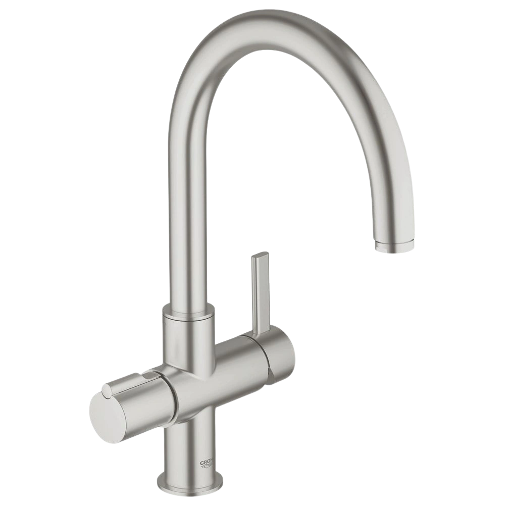 Il miscelatore lavello monocomando Red Duo contiene un manico separato per acqua bollente e un manico tirante e girevole certificato. Il rubinetto con una bocca d'erogazione orientabile contiene...