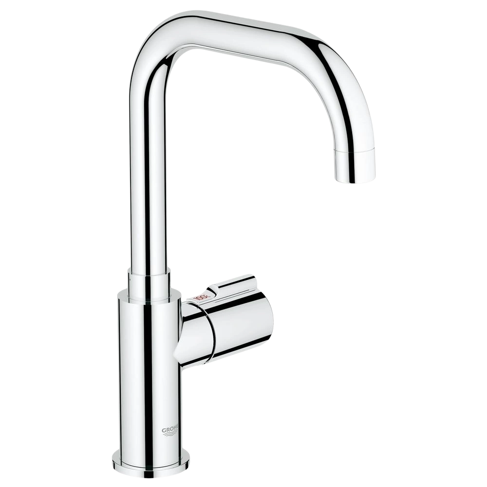 Il rubinetto Red® Mono è adatto per acqua bollente e contiene un manico tirante e girevole certificato con protezione bambini.