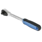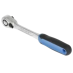 Ratchet with 1/2" square drive and a return angle of 6°. Due to fine toothing with 60 teeth, the operation in confined areas is possible. A lever change and push-button release make it easy to...