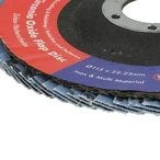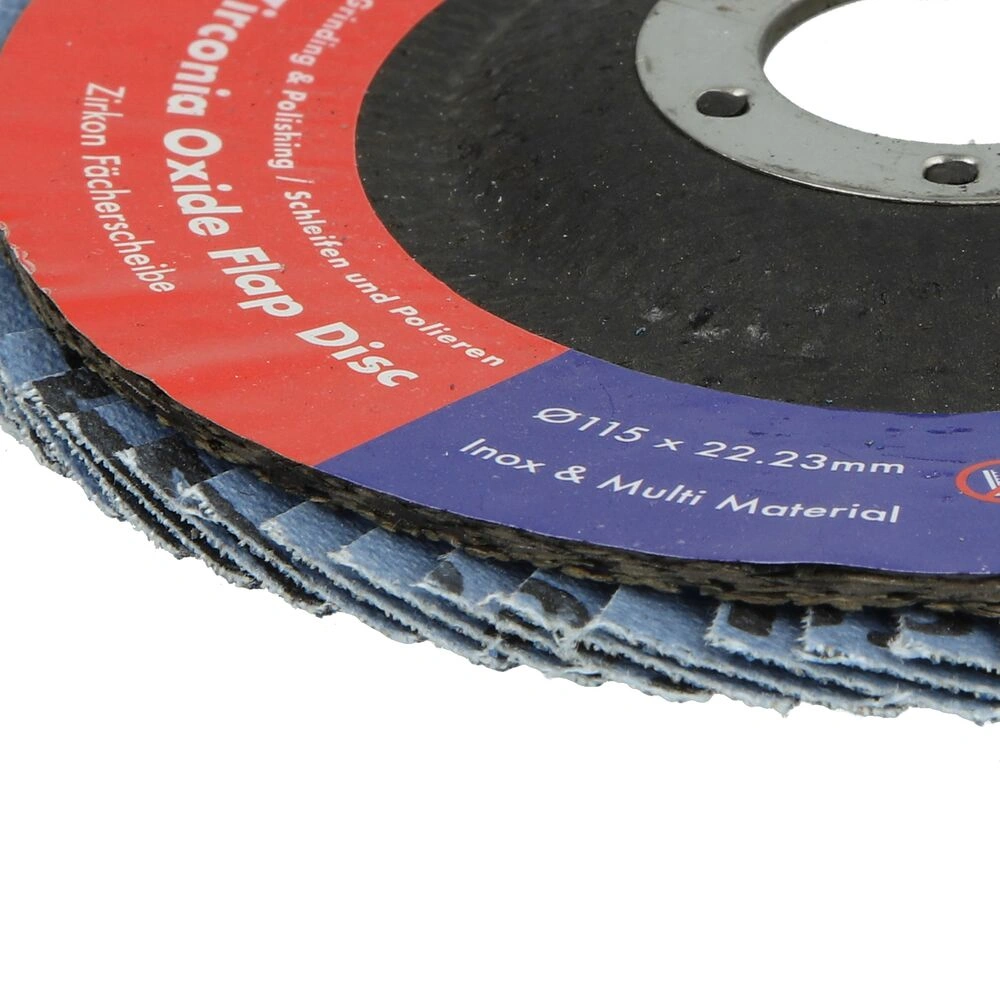 Disco lamellare a ventaglio per la lavorazione di cordoni di saldatura e cordoni d'angolo su alluminio, metalli non ferrosi, acciaio inossidabile, acciaio e titanio. Massimo rendimento di asportazione a lungo termine, grazie alla grana abrasiva al corindone di alta qualità su piatto di supporto lamelle rinforzato in fibra di vetro e alle proprietà autoaffilanti della grana. La disposizione ottimizzata delle lamelle conferisce una maggiore flessibilità durante l'uso e garantisce un'elevata durata.