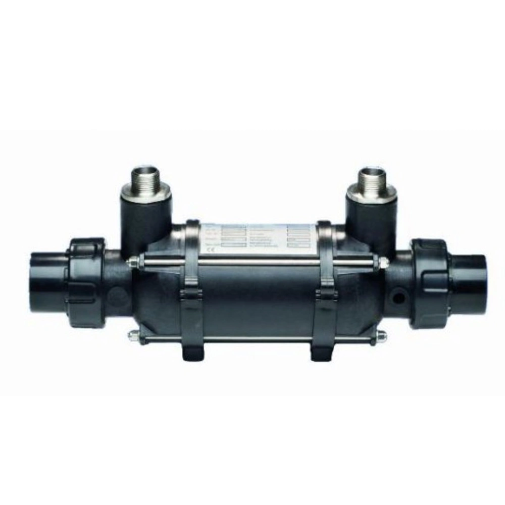 Scambiatore di calore ad alte prestazioni con tubo corrugato in acciaio inox, progettato per il riscaldamento efficiente di piscine, vasche idromassaggio e circuiti termici. Compatibile con caldaie, pompe di calore, collettori solari e altri generatori di calore.