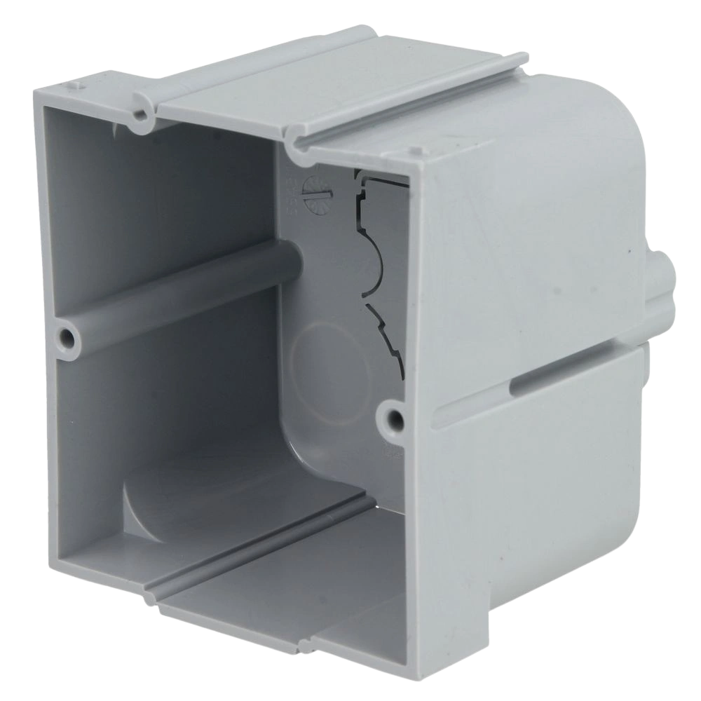 La scatola a incasso combinata è adatta per l'isolamento esterno ed è fatto in plastica senza alogeni (resistente al fuoco fino ai 650 °C). Contiene due aperture per cavi fino a Ø 16 mm ed è confermata secondo la DIN 18015-5.