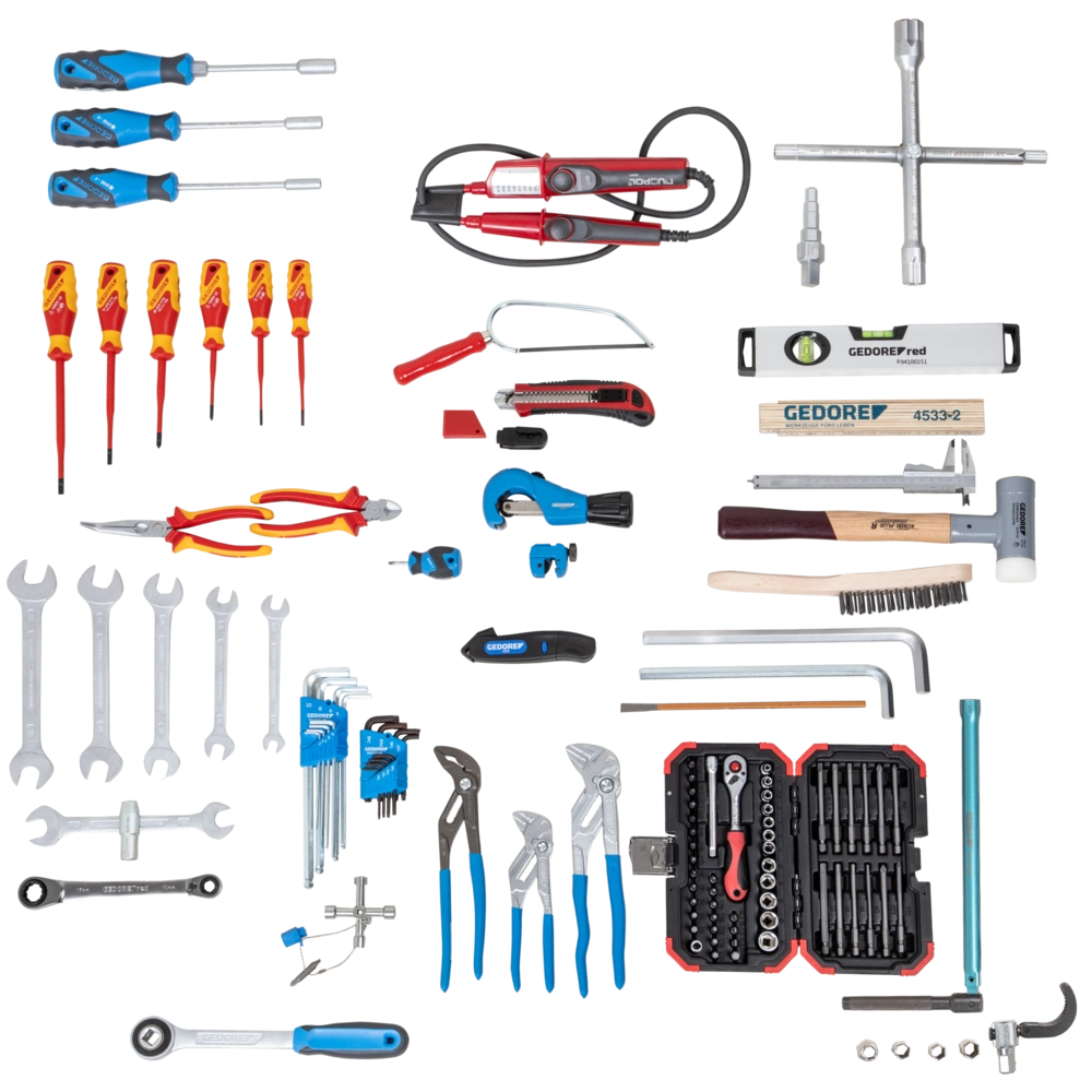 Gamma completa di utensili ottimizzata per Veto Tech-Pac con strumenti di alta qualità per l'uso quotidiano nel settore idraulico, del riscaldamento e dell'installazione.