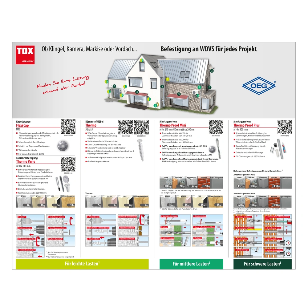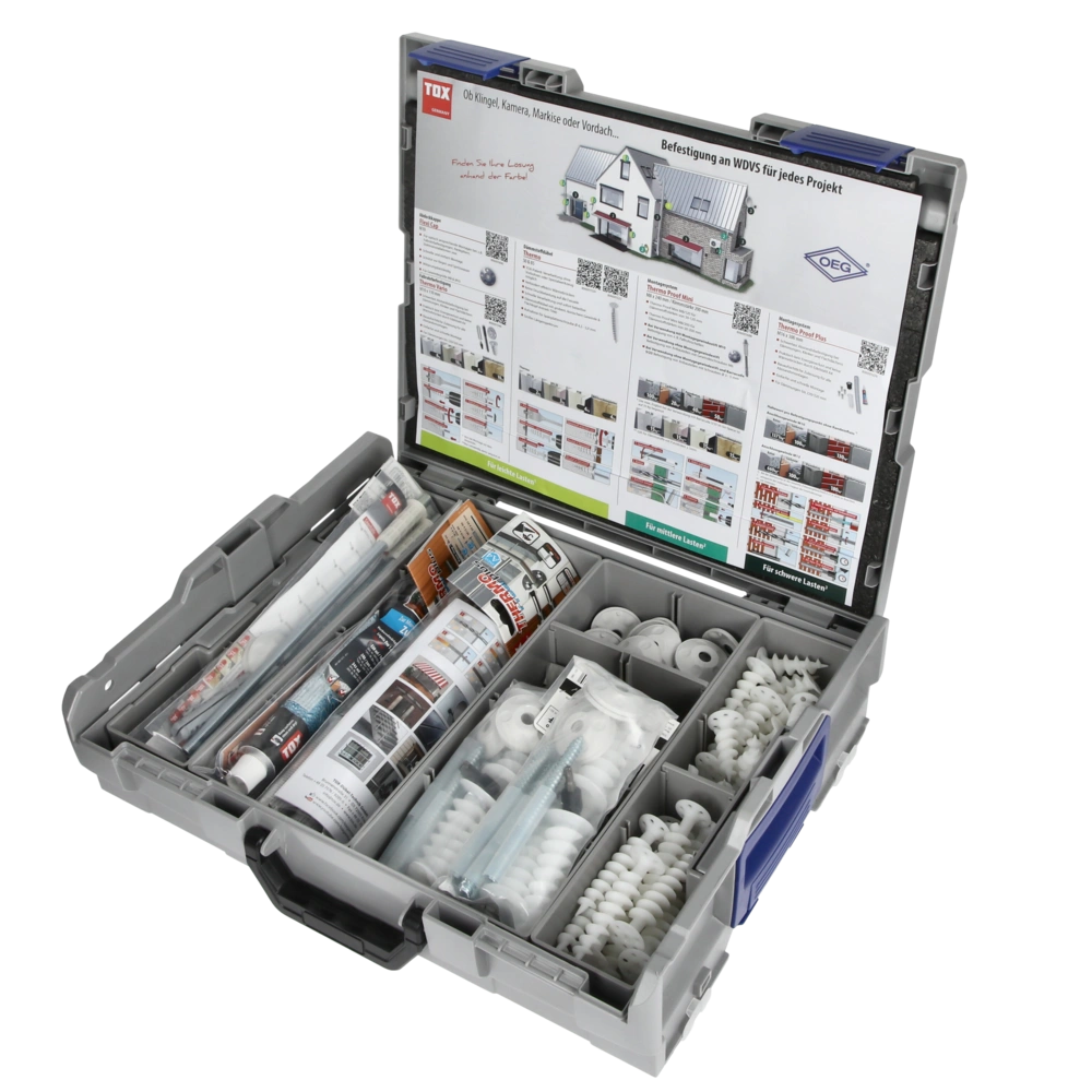 Set di fissaggio per fissare diversi carichi alle facciate isolate. Chiaramente organizzato secondo esempi di applicazione. Dalle tende da sole, ai pluviali alle cassette per le lettere, il set di fissaggio giusto è sempre disponibile...