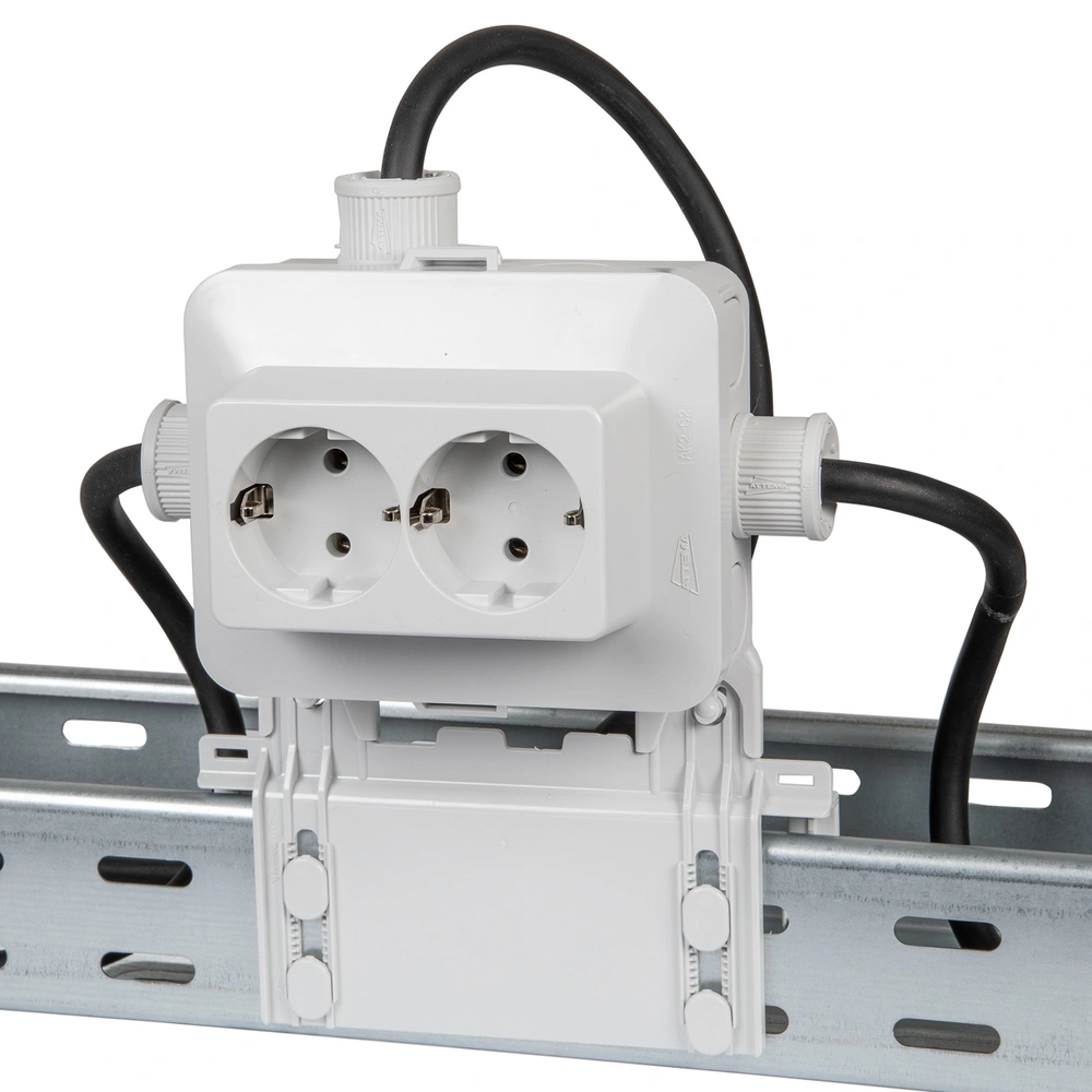 Tutte le informazioni sul prodottoCoperchio di presa preassemblato per scatole di derivazione modulari AK2.