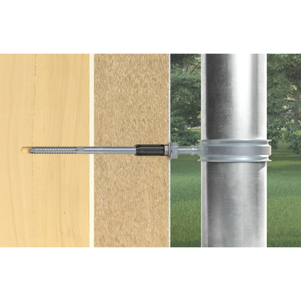 Adjustable stand-off installation system for thermally separated fixation in thermal insulation composite systems. The threaded rod with glass-fibre-reinforced cone cuts its own way through the plaster and into the insulation material without a setting tool. The cone on the head of the threaded rod interrupts the thermal bridge. The installation system can hold medium-sized loads such as lights, letterboxes or lightning rods in concrete, aerated concrete and masonry made of perforated or solid brick.