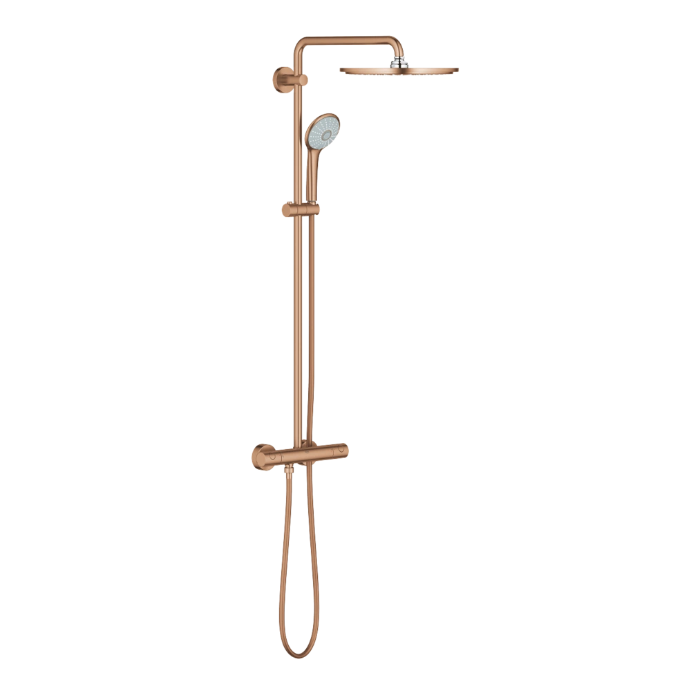 Il sistema doccia Euphoria XXL 310 con termoelemento ad espansione è adatto per il montaggio a muro. L'invertitore rende possibile il cambiamento tra il soffione doccia con snodo e la doccetta che è regolabile in altezza. A una temperatura di +38 °C il blocco di sicurezza si accende automaticamente. Inoltre il sistema contiene un'estensione di temperatura fino a +43 °C. Il sistema anticalcare garantisce una pulizia facile. Il sistema doccia è adatto per scaldacqua a partire da 18 kW/h.