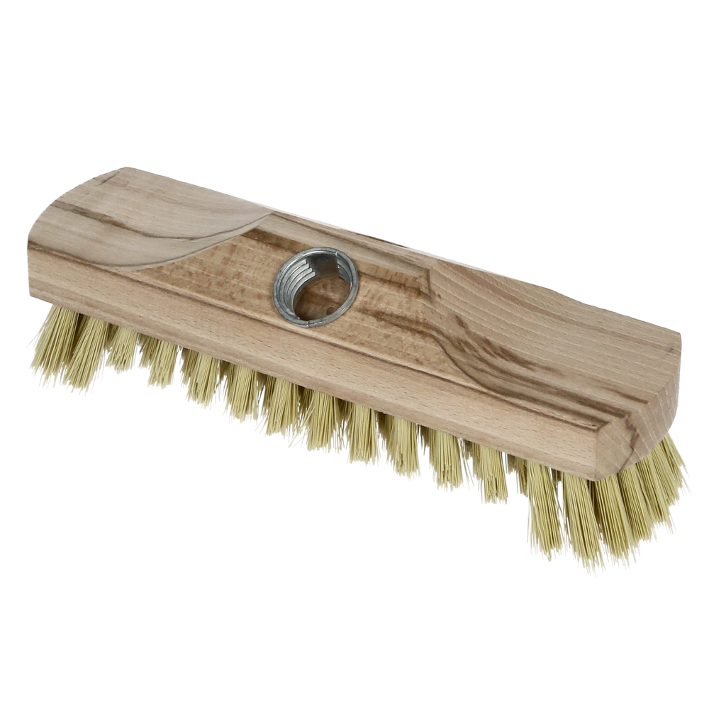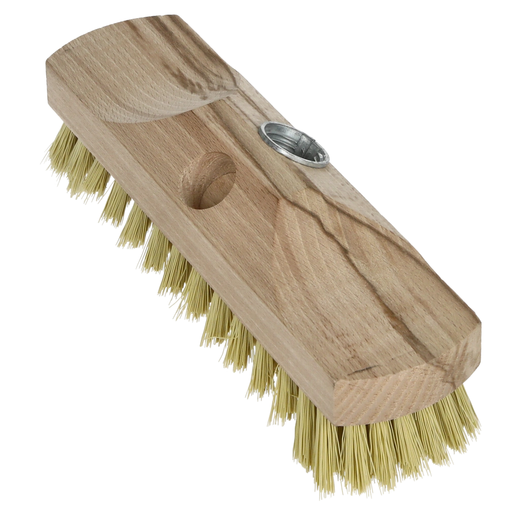 Spazzolone in legno di faggio con setole di media durezza e due opzioni diverse per il fissaggio del manico. Le setole laterali sono inclinate per pulire agevolmente scale, bordi e angoli. Le setole sono resistenti al calore, alla rottura, criccatura e non marciscono.