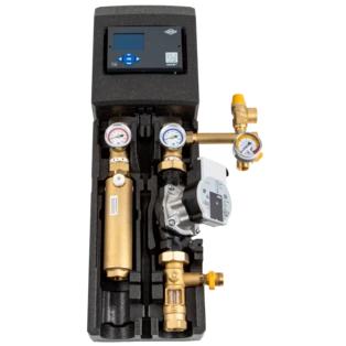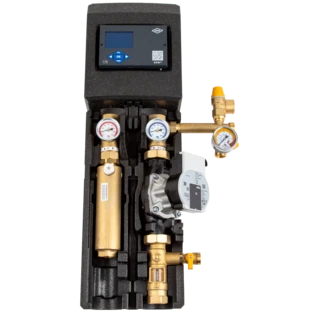 La stazione solare SolarBloC maxi Basic con pompa Yonos PARA ST 25-180/8-75 è un gruppo di montaggio compatto e completamente prefabbricato di marca per il trasferimento del calore dal collettore all'accumulatore nei sistemi solari...