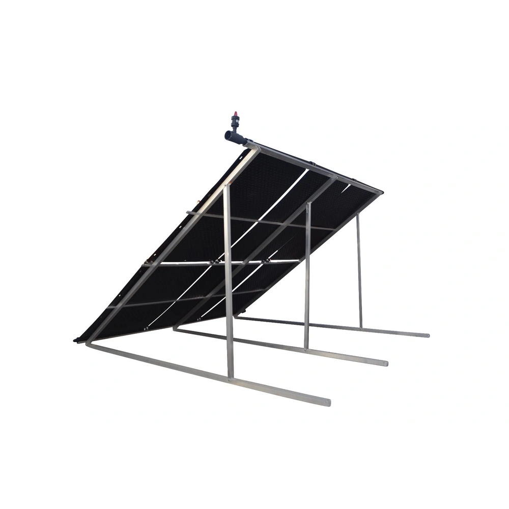 Tutte le informazioni sul prodotto FornituraStaffa di supporto a rialzo per assorbitori termosolari (pannelli solari) disposti in serie, a terra o su tetto piano.