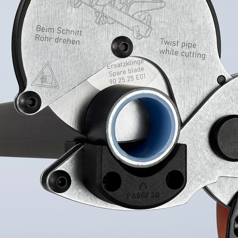 Tagliatubi per tubi in composito e plastica fino a Ø 26 mm. Il tubo viene deformato solo in minima parte dalla ruota di taglio rotante. L'ampio supporto consente tagli perfettamente ortogonali...