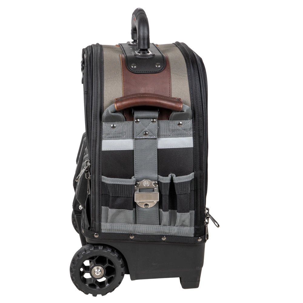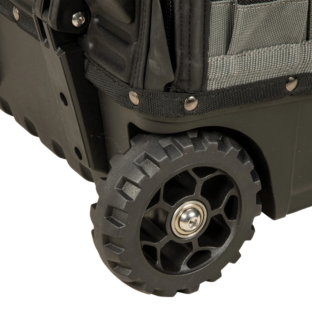 Tutte le informazioni sul prodottoBorsa porta attrezzi estremamente robusta, realizzata in tessuto di nylon antistrappo e idrorepellente, con base in plastica impermeabile. La borsa offre un ampio spazio di archiviazione con numerosi scomparti interni ed esterni. Le tasche staccabili per utensili e strumenti di misura consentono di personalizzare la Wheeler in base alle esigenze individuali. I robusti occhielli con cinghie forniscono un ulteriore supporto per l'attrezzatura o gli accessori. Le grandi ruote scorrevoli e la maniglia telescopica garantiscono un facile trasporto.