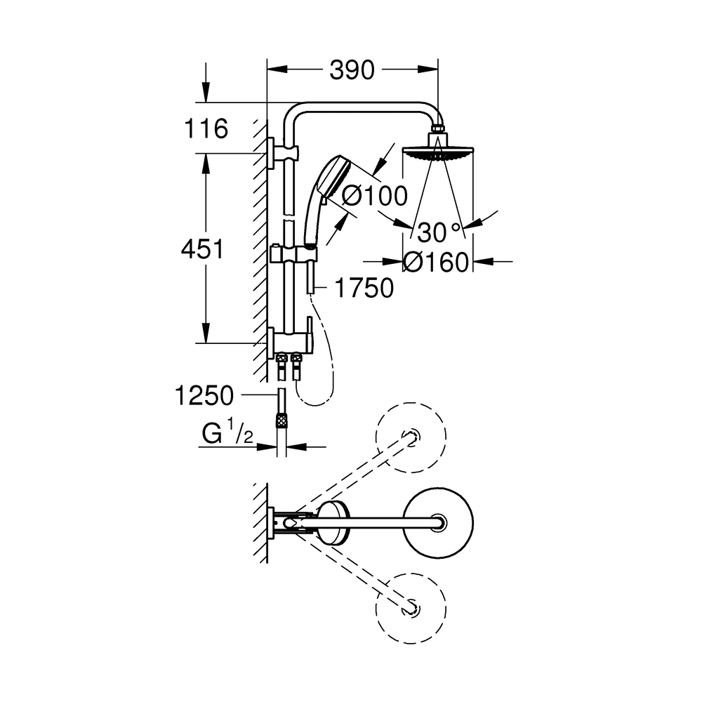 | 1 x | braccio doccia orizzontale 390 mm | ||