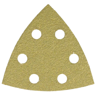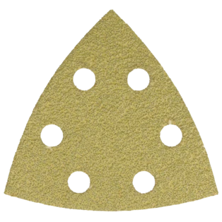 The abrasive triangle with 6 holes has a smooth latex paper backing and a grinding dust -repellent stearate coating to finish paints and lacquers. The optimised grain coating ensures long service lives.