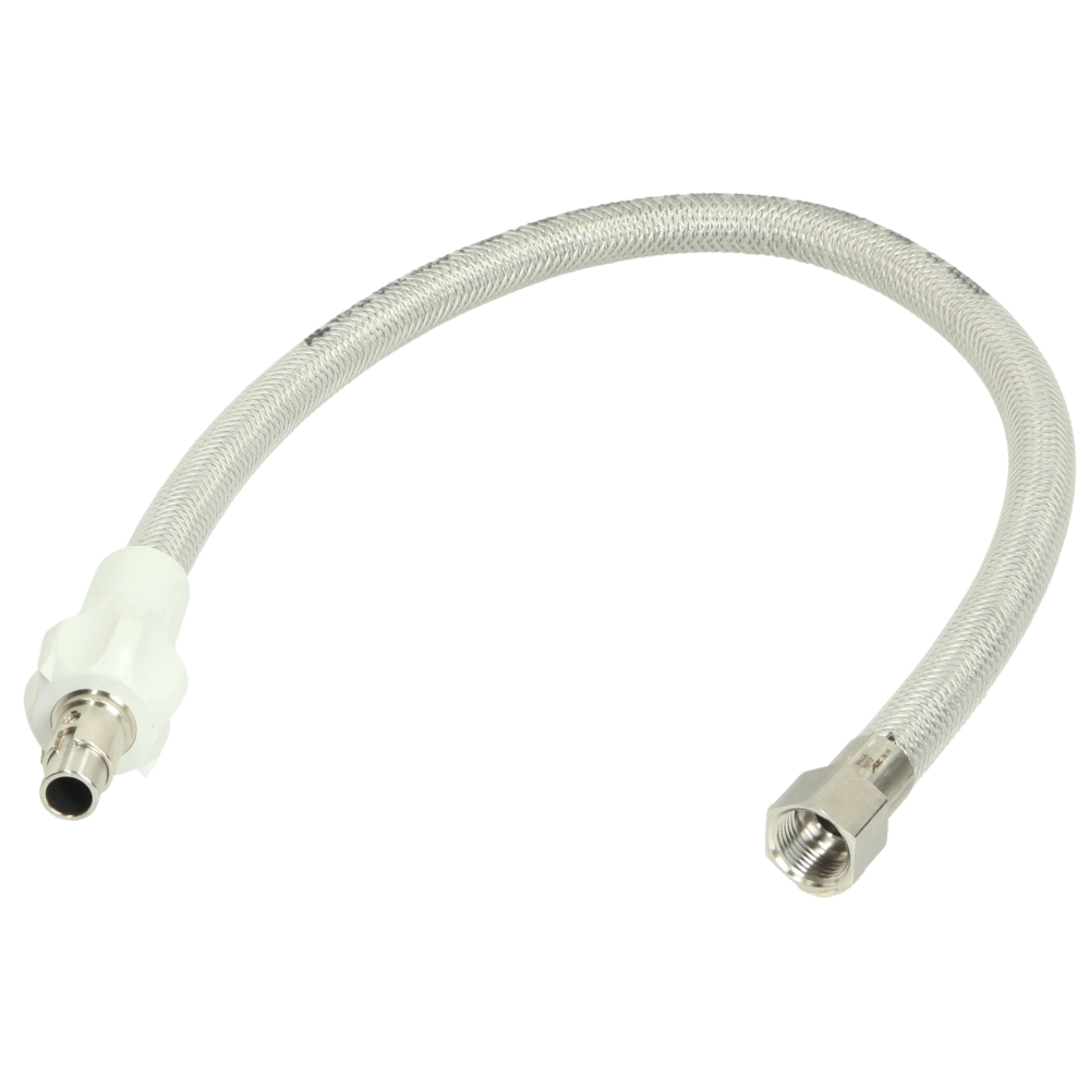 Il tubo per tutti i gas è adatto per il collegamento di apparecchi a gas per uso domestico per fluidi gassosi e liquidi. Ha un tappo di collegamento per prese gas e un dado a risvolto autosigillante.