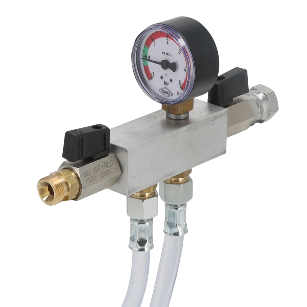 Le due valvole a sfera preassemblate sono utilizzate per l'arresto, il manometro per il display e il tubo in PVC per l'avvistamento.