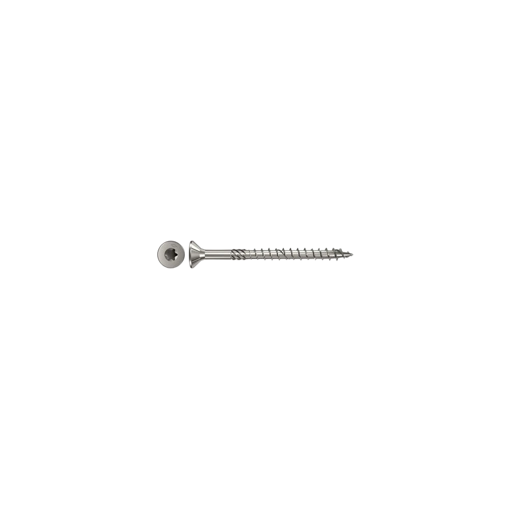 Chipboard screw with partial thread and Torx star recess and countersunk head. The partial thread enables the firm attachment of wooden elements to each other. The electrogalvanised and blue passivated screw is suitable for fixing load-bearing components in coated wood, hardwood, softwood and timber connections.