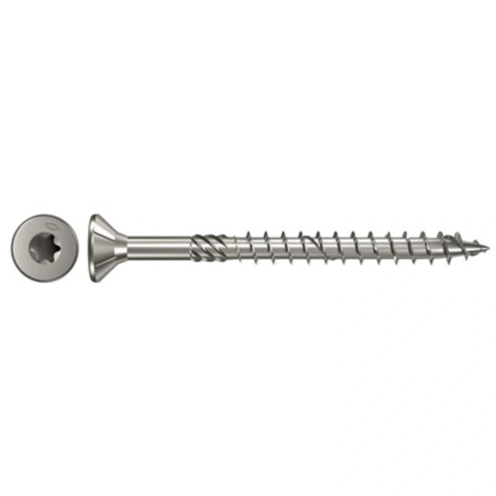 Chipboard screw with partial thread and Torx star recess and countersunk head. The partial thread enables the firm attachment of wooden elements to each other. The electrogalvanised and blue passivated screw is suitable for fixing load-bearing components in coated wood, hardwood, softwood and timber connections.