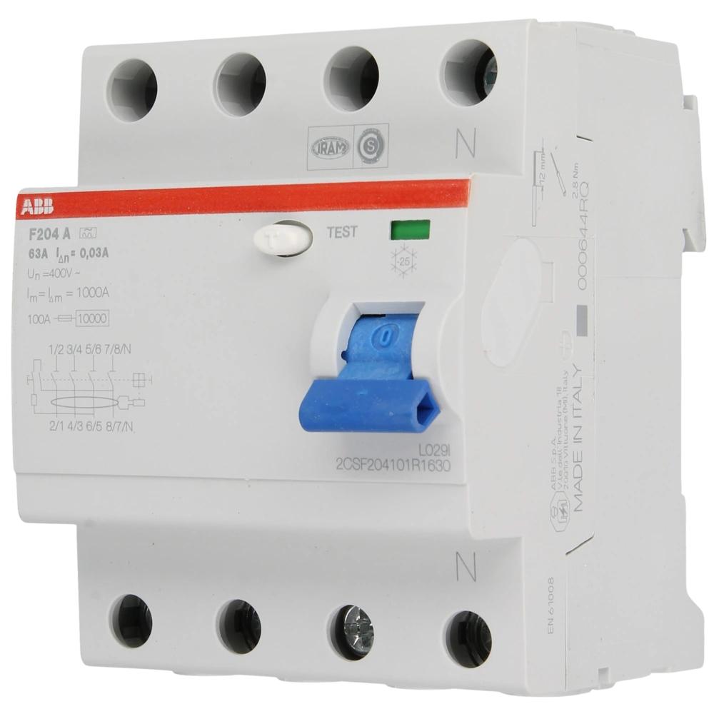4-polige aardlekschakelaar type A voor het automatisch uitschakelen van stroomkringen bij overschrijding van de toegestane foutstroom en ter beveiliging tegen levensbedreigende situaties door isolatiefouten of gevaarlijke aanraakspanningen.
