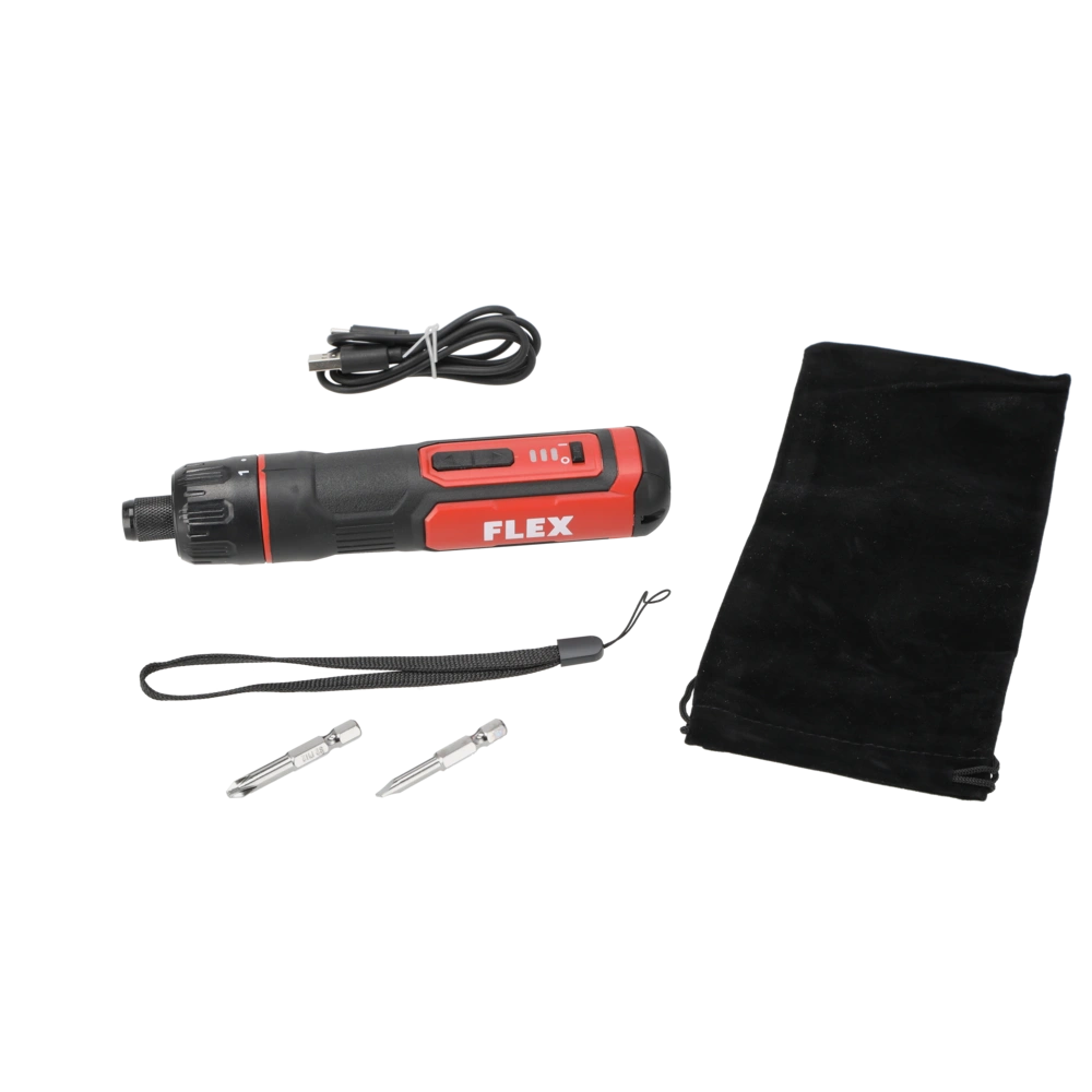 Handige, accu-aangedreven schroevendraaier voor in uw broekzak met 7 koppelstanden, rechts-/linksdraaiing en 1/4" hex-gereedschapshouder. De slanke handgreep met softgrip-inzetstukken zorgt voor aangenaam werken. De schroevendraaier met geïntegreerd LED-lampje wordt geleverd met sleuf- en PH2-bit en USB-C-oplaadkabel in een beschermhoes.