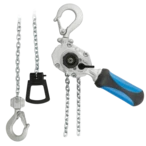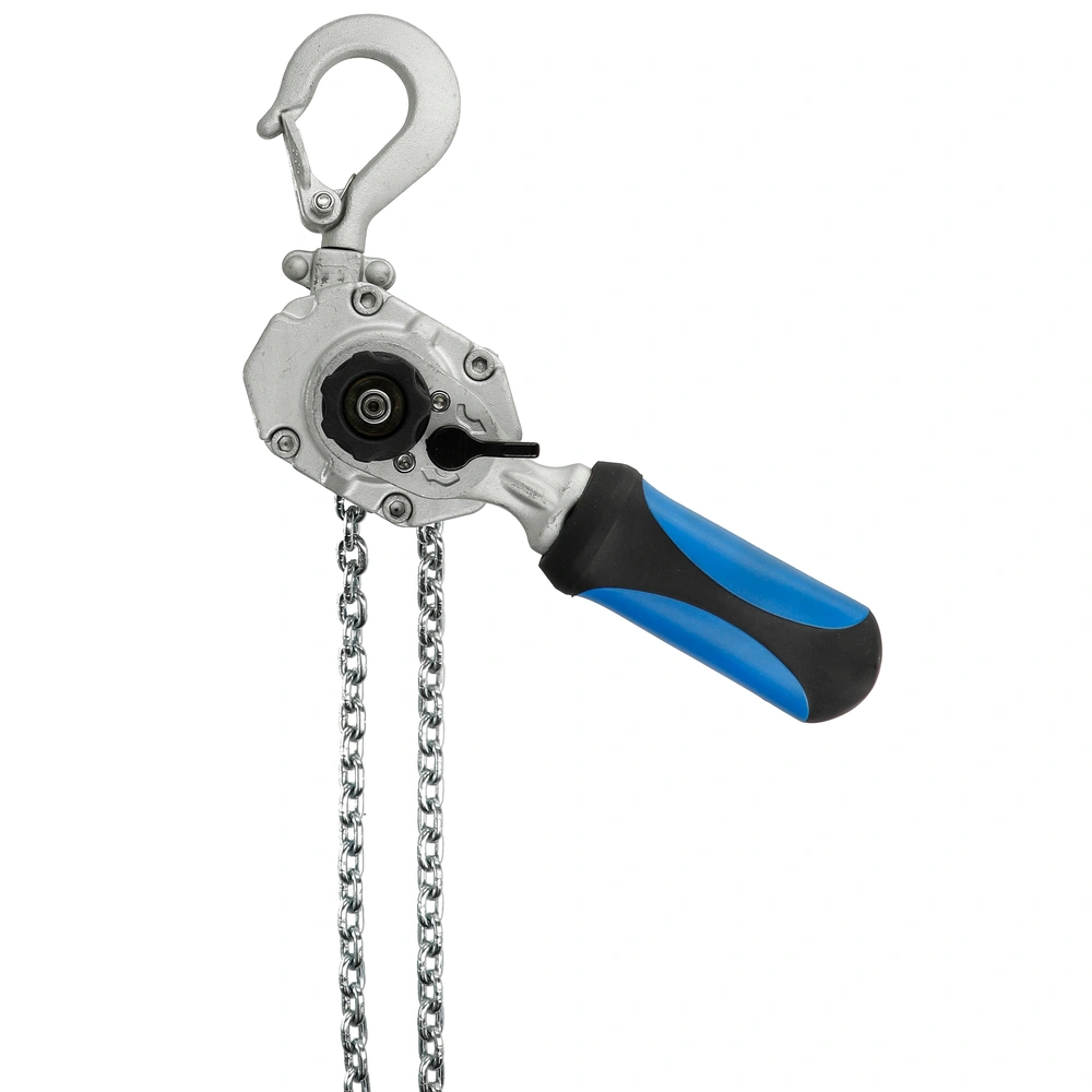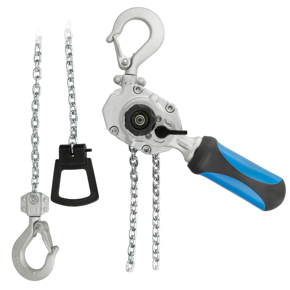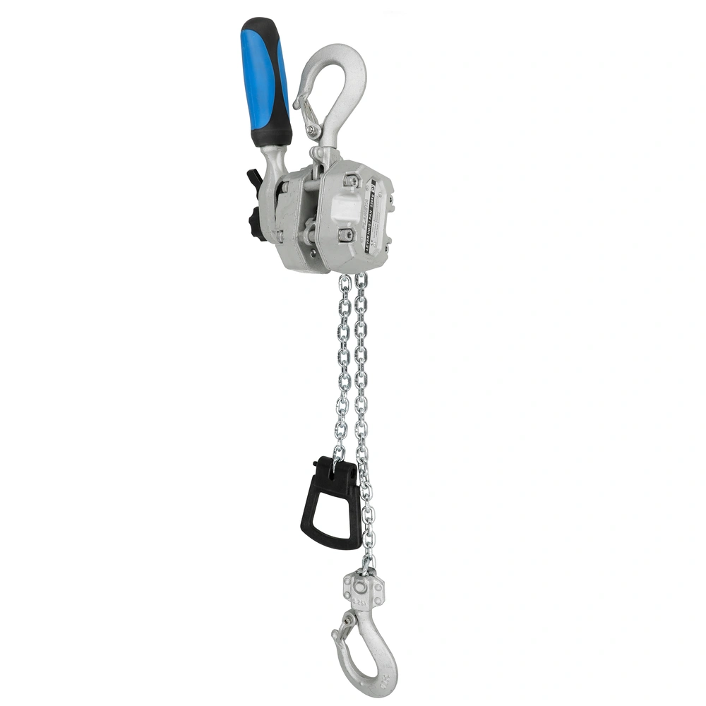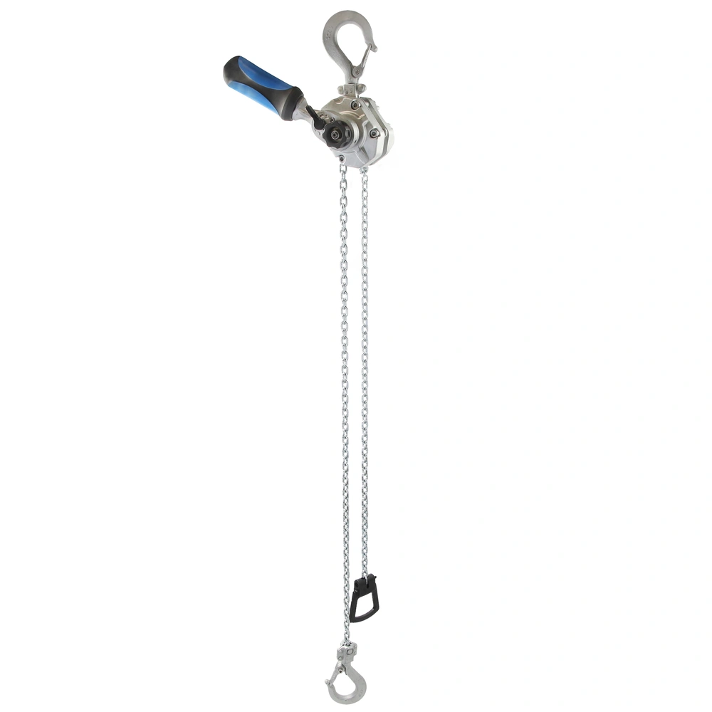 Hefboomtakel in gesloten aluminium drukbehuizing met kettingstreng voor industrie en service voor veilig hijsen, trekken en sjorren. Het robuuste eindstuk van de ketting voorkomt dat de ketting in het apparaat wordt getrokken...