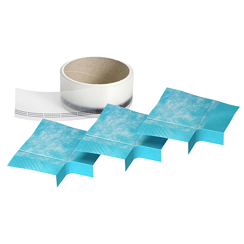 Voor het afdichten van de randen van bij het installeren van gelijkvloerse douche- en badkuipen met planchet. De voorgevormde foliehoekstukken zijn aan de bovenzijde met vlies gelamineerd en aan de onderzijde zelfklevend.