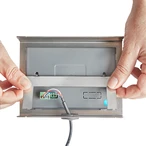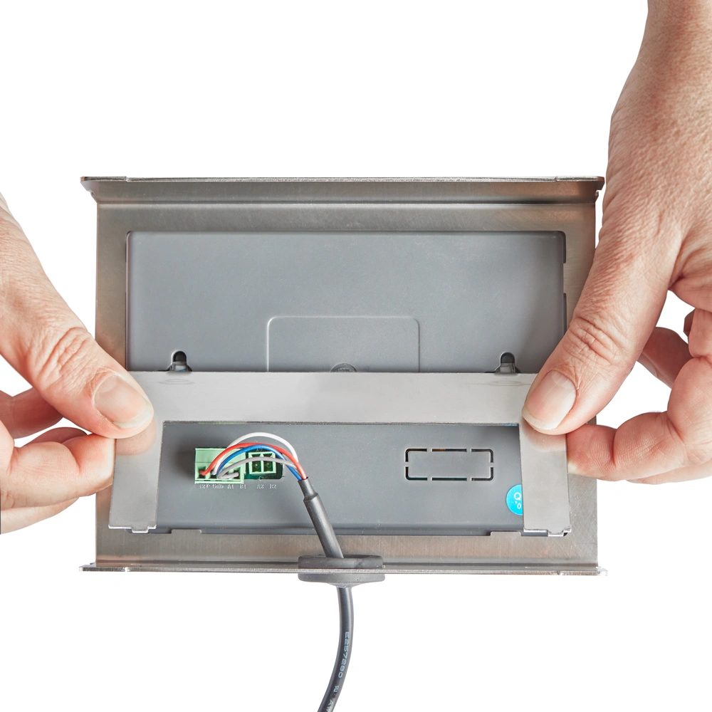 Robuuste opbouwbehuizing voor het touch display van de inverter huis warmtepomp. De behuizing wordt geleverd in een hoogwaardige metalen uitvoering.