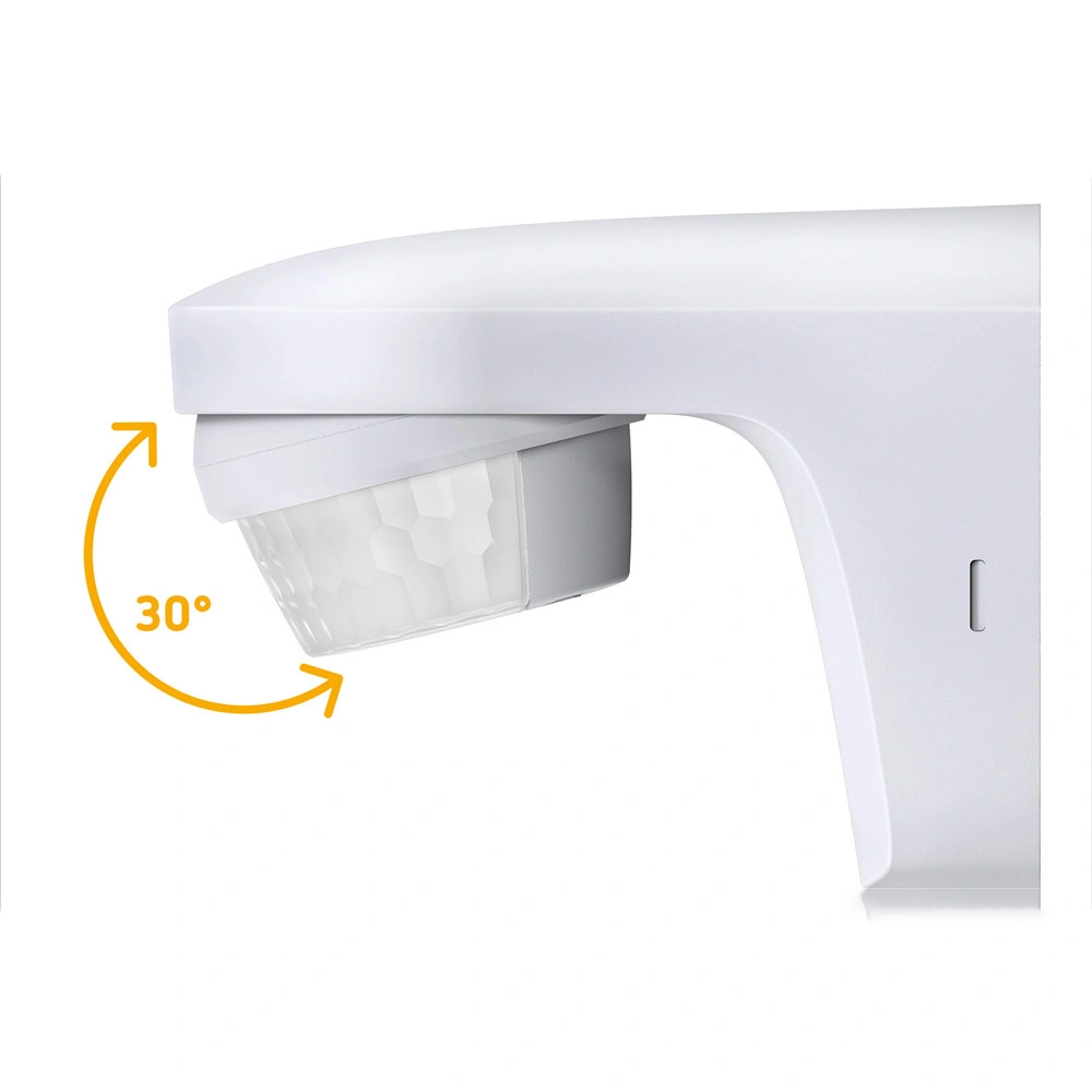 Infraroodgestuurde bewegingsmelder met kruipbeveiliging voor wandmontage buitenshuis. Bijna alle soorten lampen kunnen worden aangestuurd dankzij de gemengde lichtmeting. De horizontale sensorkop kan...