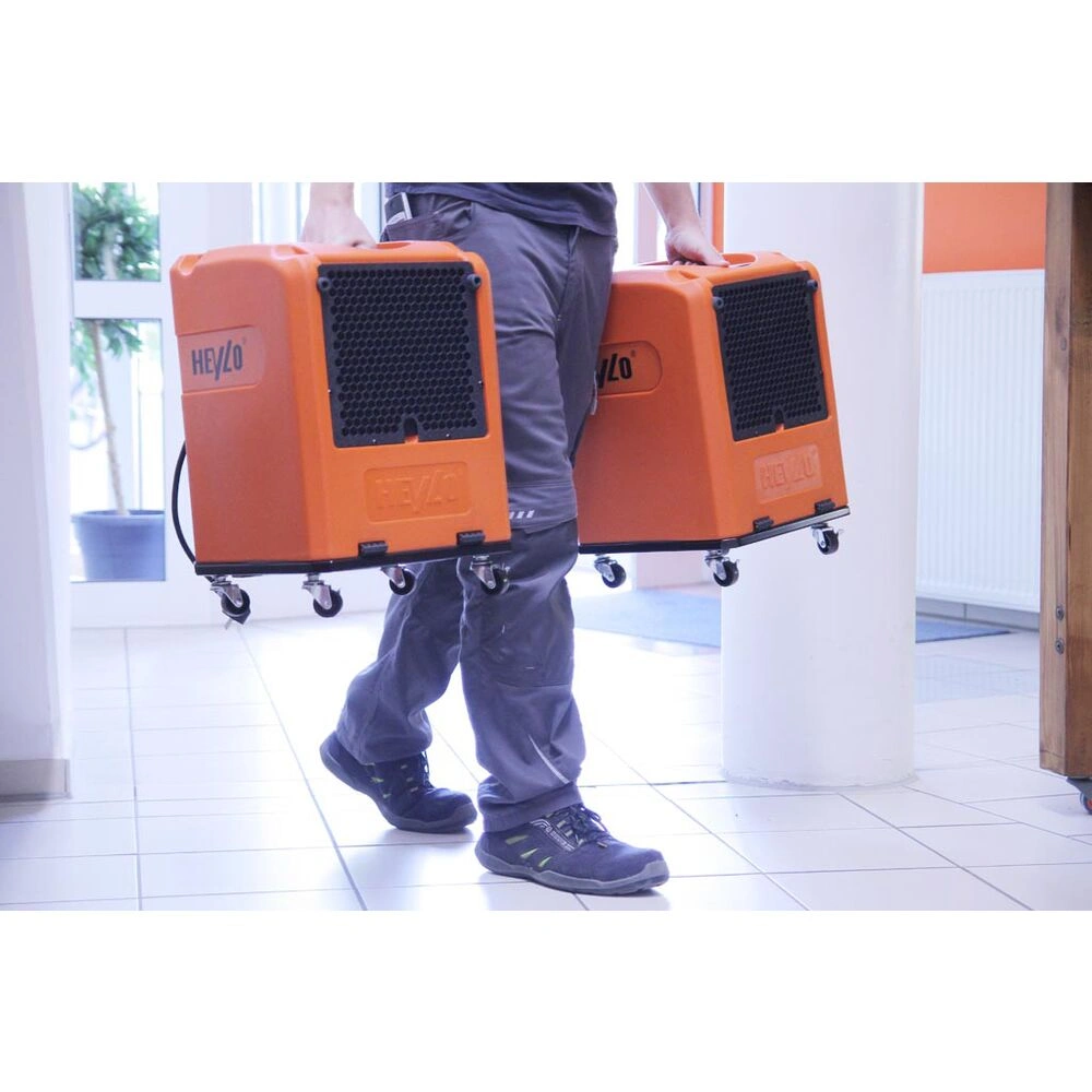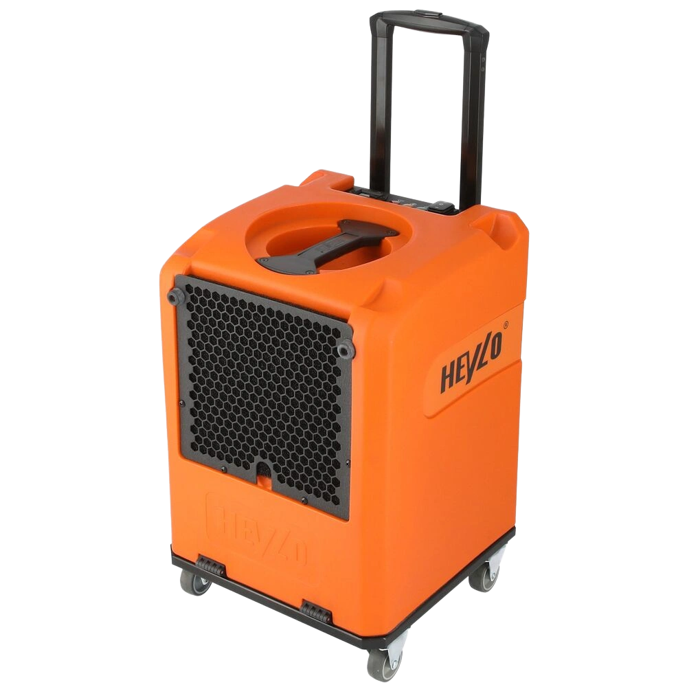 De lichte en compacte bouwdroger met geïntegreerde condensaatvoedingspomp is geschikt voor het drogen van vochtige ruimtes. Het zuigt de omgevingslucht aan en haalt het vocht eruit.