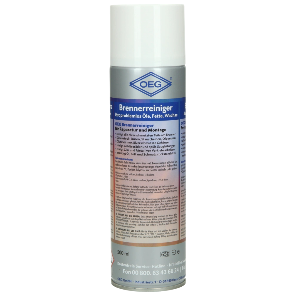 De OEG-branderreiniger is geschikt voor het residuvrij reinigen van sterk vervuilde branderdelen en alle blanke metalen oppervlakken. Hij lost oliën, vetten en wassen op.