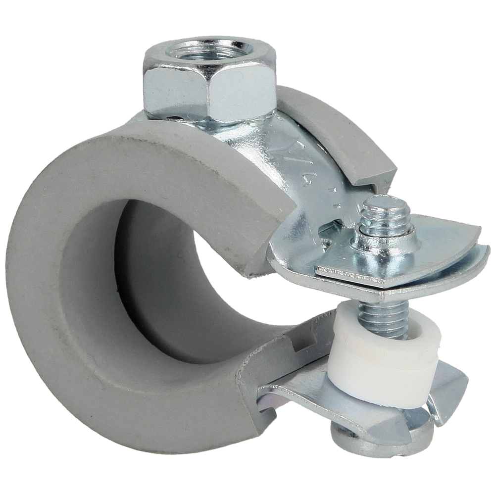 De buisklem met schroefdraad wordt gebruikt voor kunststof buizen. Hij heeft een geluidsisolatie-inzetstuk gemaakt van hoge kwaliteit EPDM. De verbetering van het geluidsniveau is gemiddeld 15 db (A)...