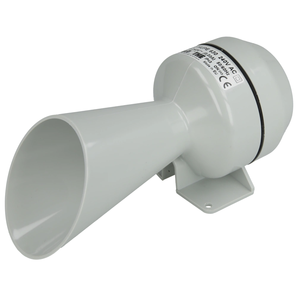 Alle productinformatieDe claxon genereert elektromechanisch geluid door een stalen membraan en kan zowel binnen als buiten worden gebruikt.
