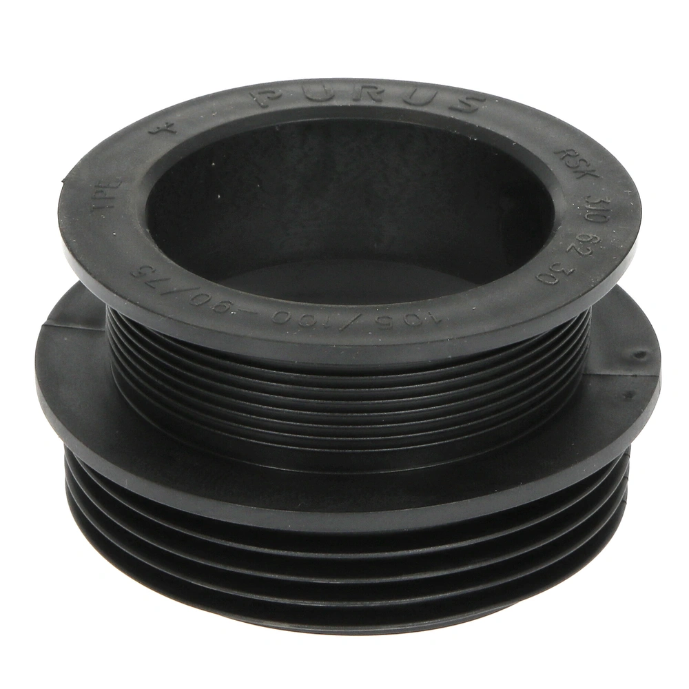 Adapter voor het verkleinen en aansluiten van rioolbuizen met verschillende diameters. De adapter kan worden aangepast aan 6 verschillende diametercombinaties door de afzonderlijke componenten af te scheuren en in elkaar te steken. De adapter is geschikt voor alle soorten rioolbuizen en zorgt voor een permanente en onderhoudsvrije verbinding. De aan te sluiten leidingen kunnen van verschillende materialen zijn gemaakt. Installatie is zowel verticaal als horizontaal mogelijk.