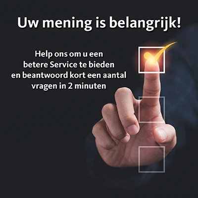 Doe nu mee aan onze online enquête. Het duurt maar 2 minuten en help ons te begrijpen wat belangrijk voor je is en waar we kunnen verbeteren. Nu deelnemen!
