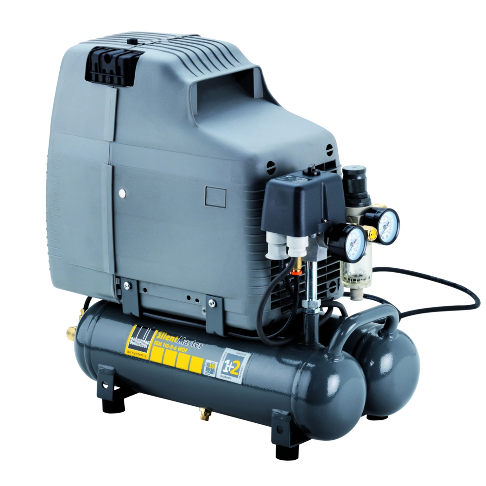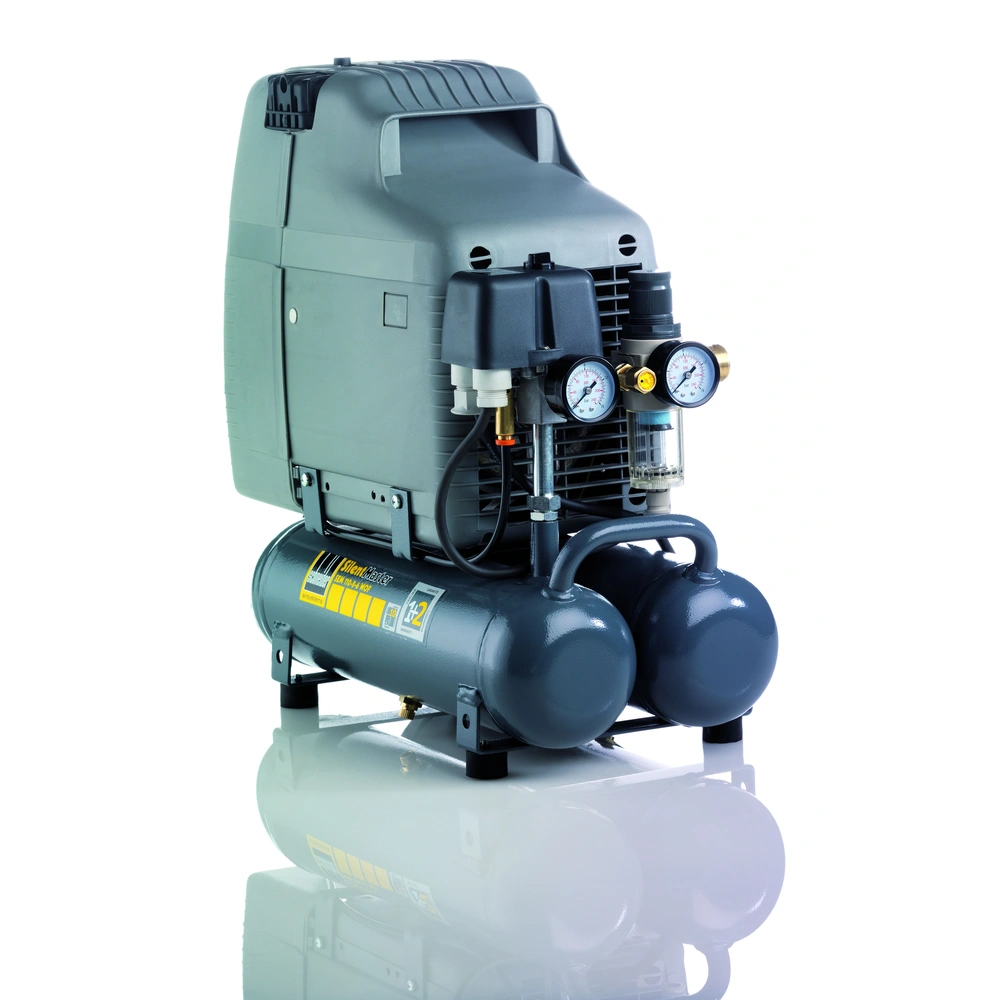 Alle productinformatieCompacte, draagbare en geluidgedempte zuigercompressor voor privé- en professionele werkzaamheden. Naast de drukregelaar en de twee manometers voor werkdruk en tankdruk, bevat de uitrusting ook een stabiele eencomponentengreep.
