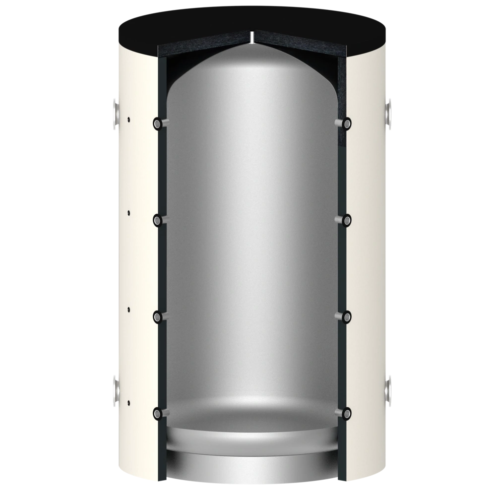 Premium CV-buffervat voor de hoogste eisen aan warmteopslag en efficiëntie. Dankzij de zeer efficiënte isolatie wordt het warmteverlies aanzienlijk verminderd in vergelijking met standaard opslagsystemen. De taak van het buffervat is het compenseren van het verschil tussen de opgewekte warmte en de verbruikte warmte. Op deze manier kunnen de warmtegeneratoren onafhankelijker van het verbruik worden toegepast.