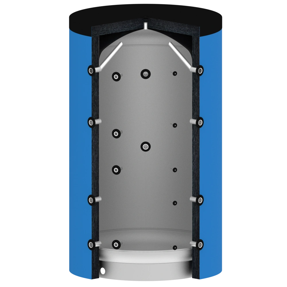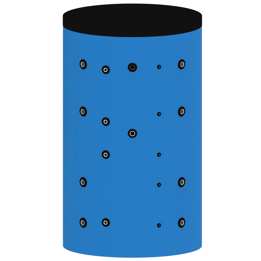 Premium CV-buffervat voor de hoogste eisen aan warmteopslag en efficiëntie. Dankzij de zeer efficiënte isolatie wordt het warmteverlies aanzienlijk verminderd in vergelijking met standaard opslagsystemen. De taak van het buffervat is het compenseren van het verschil tussen de opgewekte warmte en de verbruikte warmte. Op deze manier kunnen de warmtegeneratoren onafhankelijker van het verbruik worden toegepast.