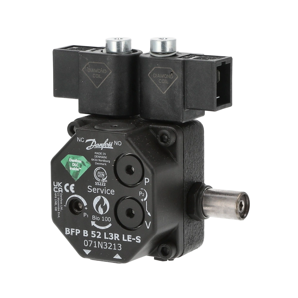 Eentraps oliebranderspomp met drukregelventiel en afsluitfunctie. De oliebranderspomp is geschikt voor biodiesel, paraffine en EL-verwarmingsolie. De hittebestendige diamantspiraal en DLC-coating van de mechanisch belaste onderdelen zorgen voor een langere levensduur en een grotere bedrijfszekerheid.