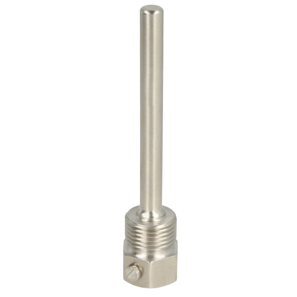 Dompelhuls geschikt voor installatie van kanaalsensoren voor temperatuurmetingen in vloeistoffen. RVS dompelhulzen worden aanbevolen voor agressieve vloeistoffen.