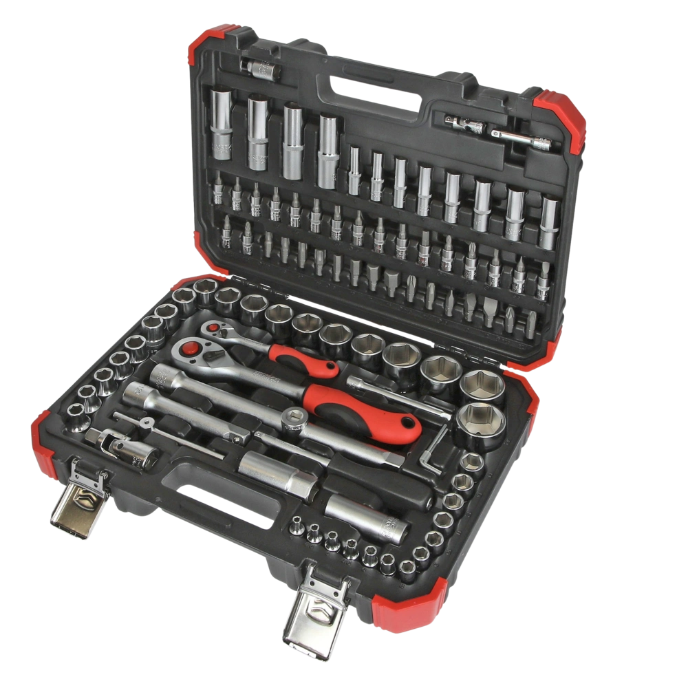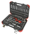 Dopsleutelset van robuust chroom-vanadiumstaal. Het mat verchroomde gereedschap wordt geleverd in een praktische en schokbestendige koffer.